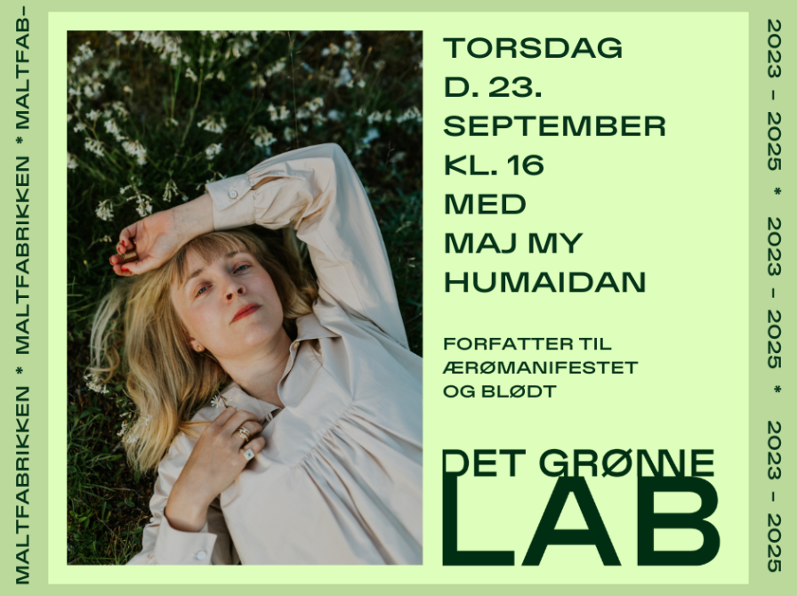 Det grønne LAB MaltfabrikkenForfatter og samfundsdebattør Maj My Humaidan har med sit nye kampskrift BLØDT endnu en gang pustet til debatten om det meningsfulde liv. I et åbent og nærværende foredrag – med god tid til spørgsmål fra publikum – deler Maj My sit blik på, hvor håbet kan findes i en verden, der ofte føles hård. Og hvorfor det netop nu er vigtigere end nogensinde at kende sine egne værdier, når alting omkring os forandrer sig med lynets hast.